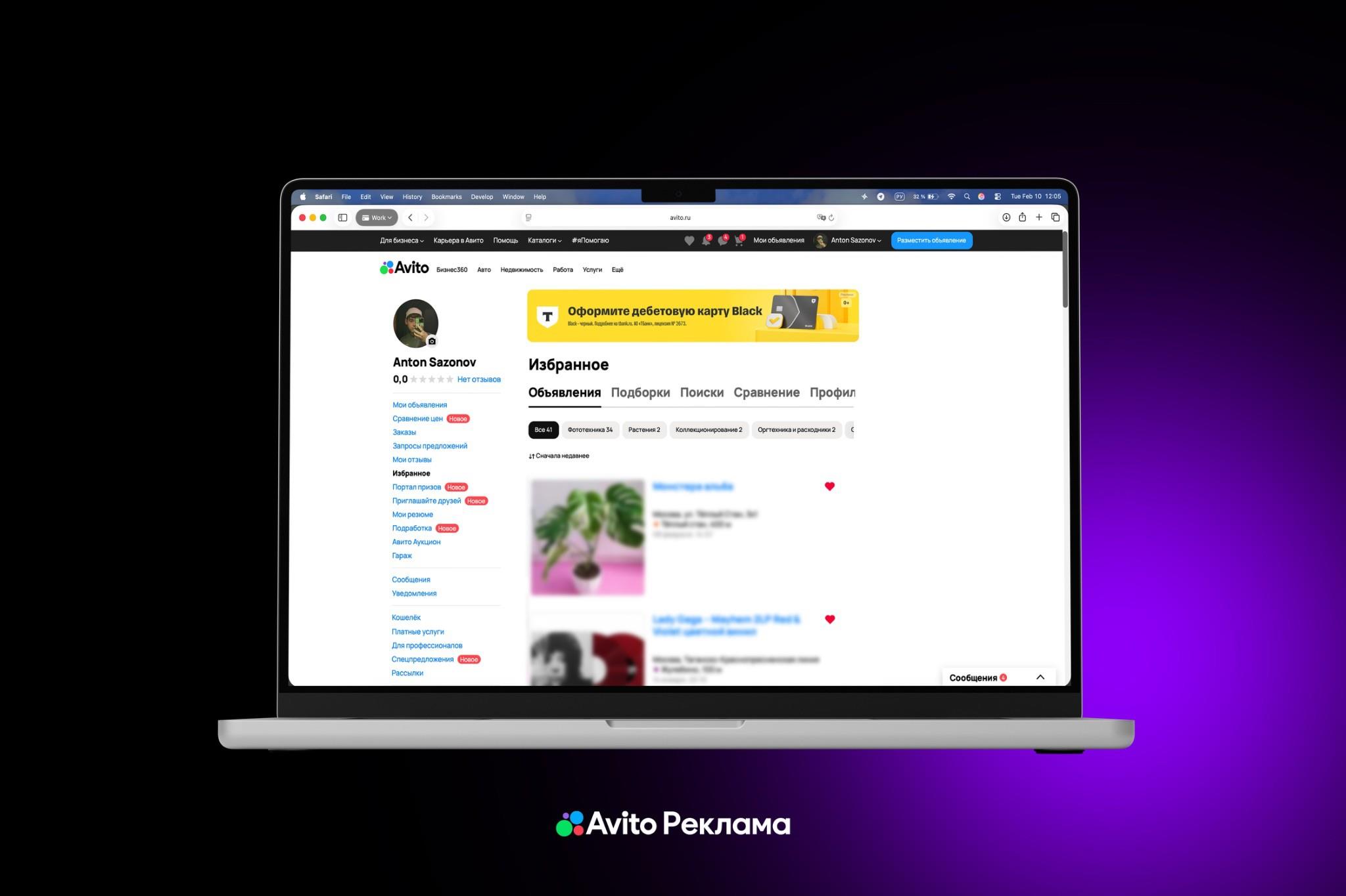 Новый баннер показывается пользователям Авито в их личных профилях и отличается высокой заметностью. Это единственный рекламный формат, который доступен в "Избранном", поэтому аудитория сразу его заметит.